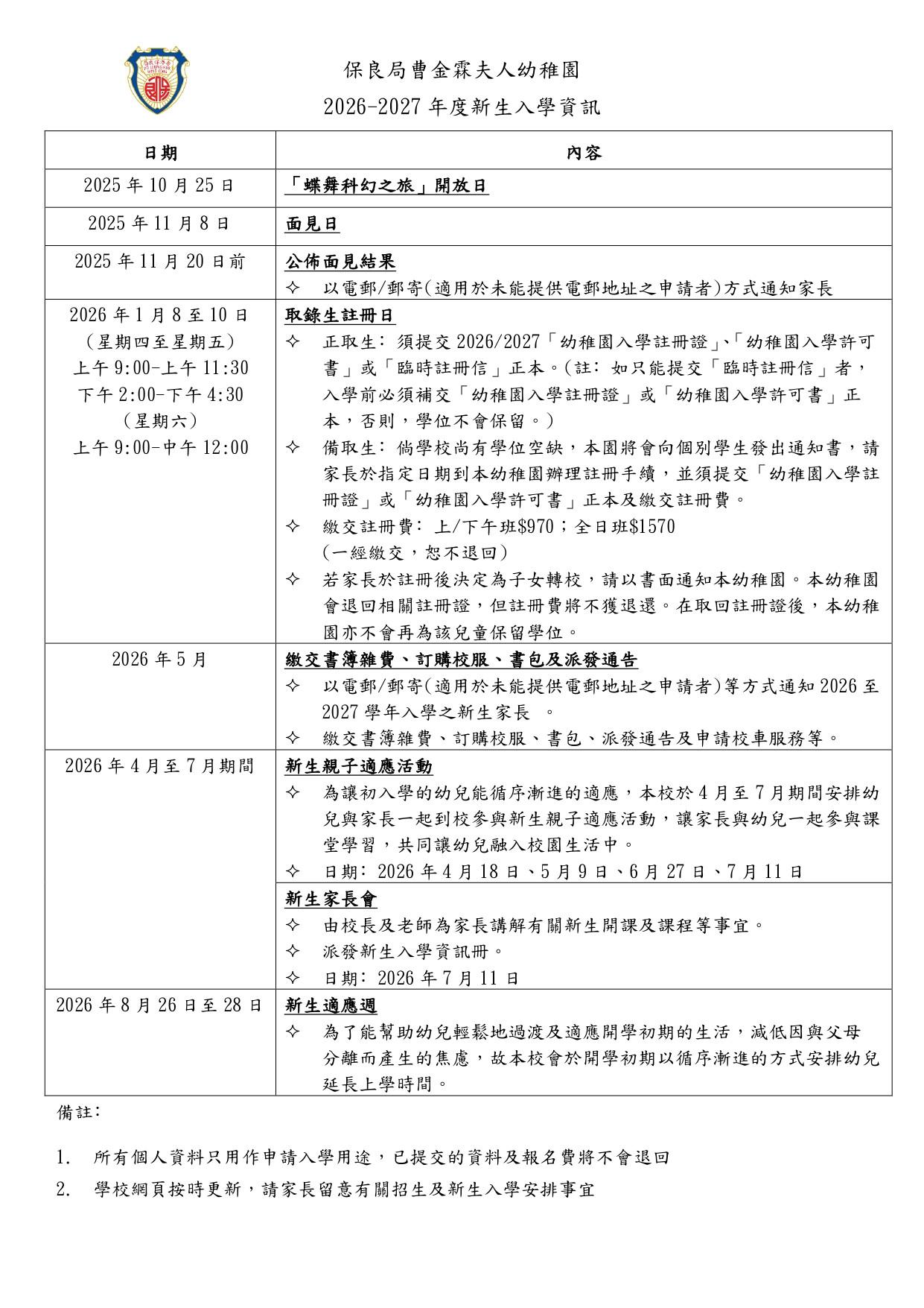 《幼稚園及幼稚園暨幼兒中心概覽》─本校資料