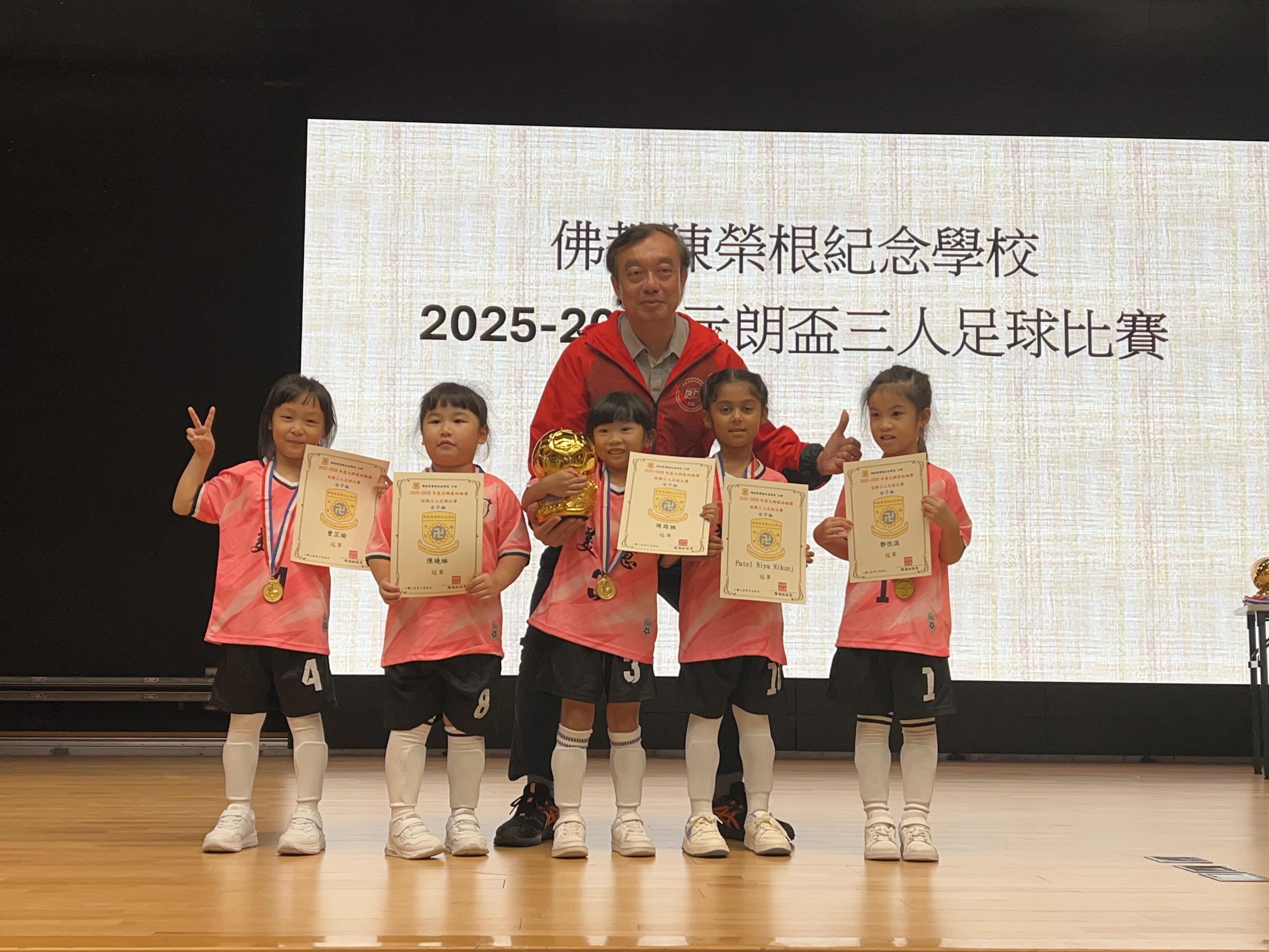本園足球隊學童參與「佛教陳榮根念學校」舉行之「2025-2026元朗盃三人足球比賽」,勇奪女子組冠軍及男子組亞軍獎項。