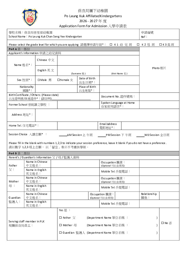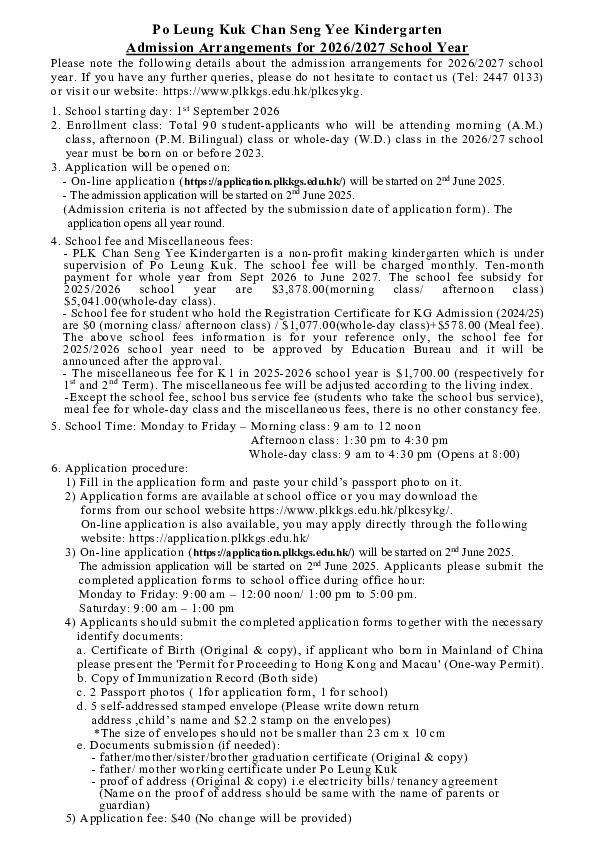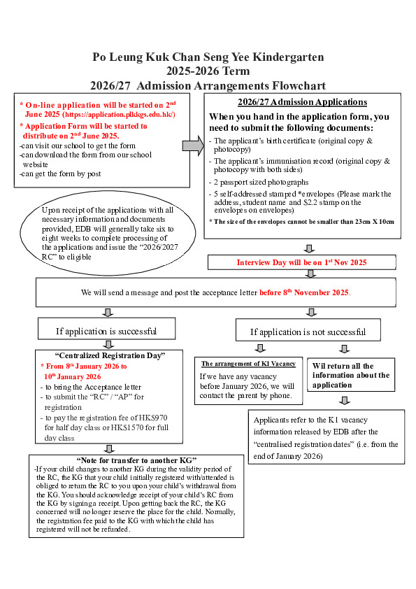 1. On-line application will be started on 2nd June 2025 (https://application.plkkgs.edu.hk/