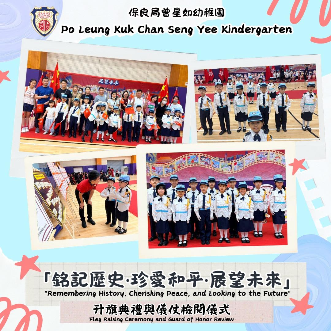 To celebrate the 76th Anniversary of the founding of the People’s Republic of China, our kindergarten flag-raising team members attended the “Remember History • Cherish Peace • Look Forward to the Future” 🇨🇳🇭🇰 Flag Raising Ceremony and Parade Review, organized by the Yuen Long District Arts Advancement Association ✨.