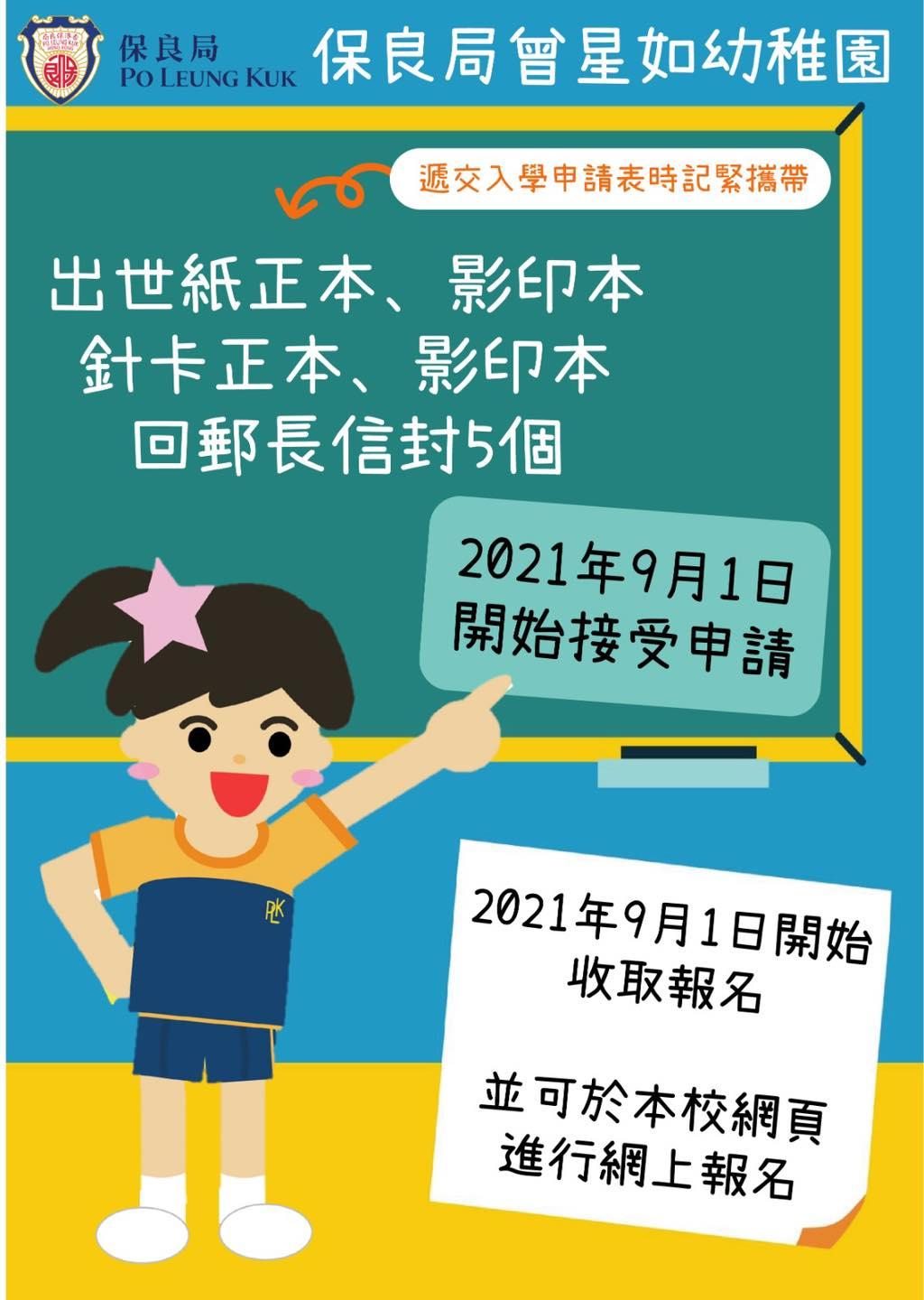 本園由2021年9月1日起歡迎各家長親臨學校索取2022-2023年度之報名表,而即日亦可在本校網頁進行網上報名。