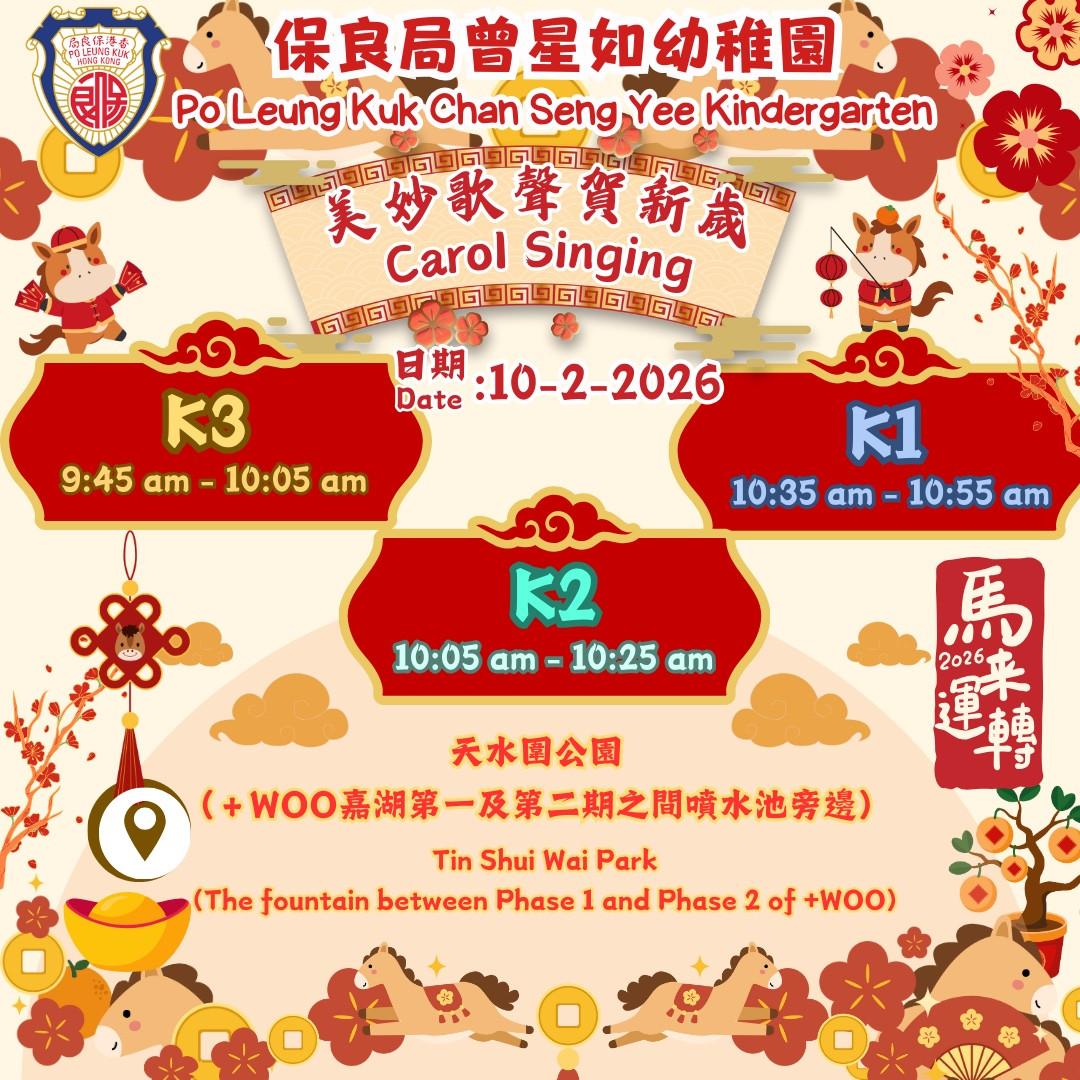 歡迎爸爸媽媽、公公婆婆、家人朋友一齊到場打氣,小朋友會用童真的歌聲同大家拜年,齊齊感受熱鬧又溫馨的新年氣氛,影多啲靚相留住美好回憶💕