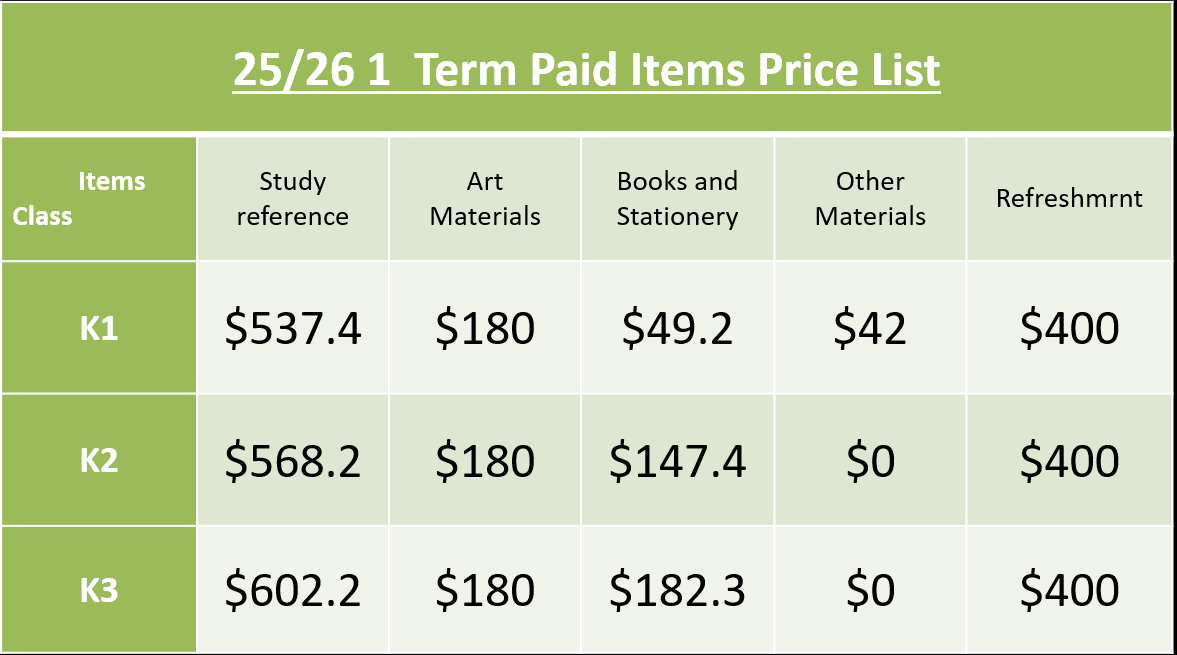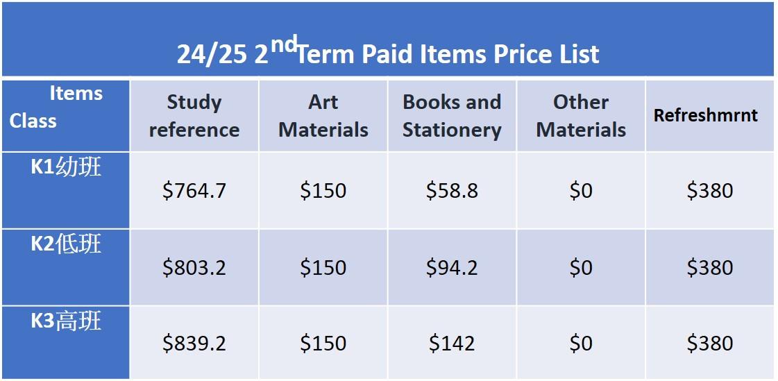 Whole-day class:School Fee$1127 Lunch Fee$460 per month