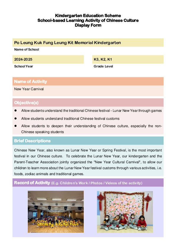 Po Leung Kuk Fung Leung Kit Memorial Kindergarten