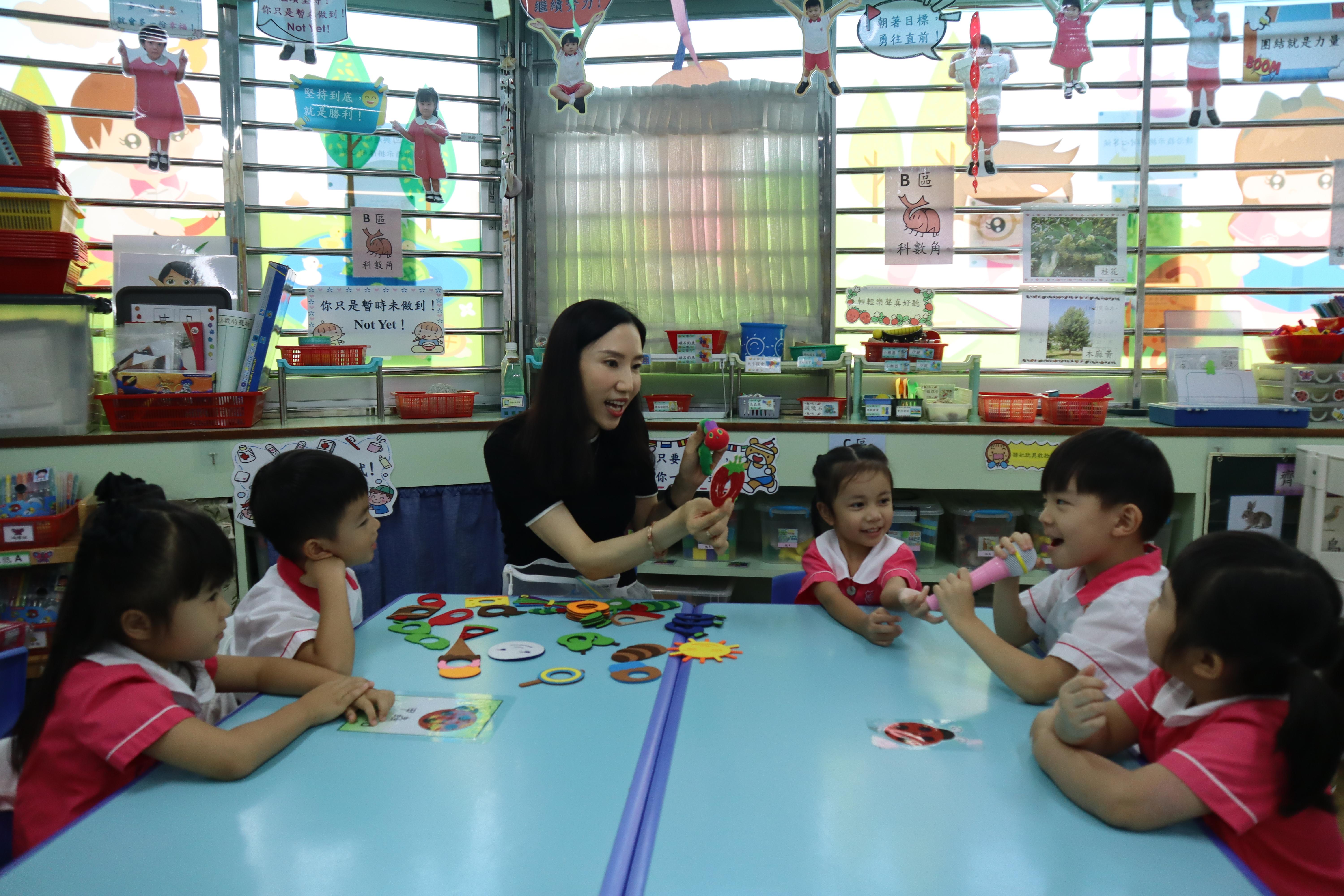 The school employs full-time NETs, to create a diverse language environment, incorporating fun in the classroom through English teaching which will help improve children's English ability. The children will explore the wonderful world of English and cultivate their curiosity and creativity. Covering different topics, the NET will teach basic English pronunciation, phonics/blending skills, spelling, singing, performances and other English-related skills in accordance with the Kindergarten Education Curriculum Guide (Learning area- Second language English). This will also improve children's English listening, speaking, reading and writing skills. When children are exposed to new English words in their daily lives, they can use basic phonics skills to improve their writing and spelling. Overall this will enhance their English learning experience, their self-confidence, and lay a good foundation for future social communication.