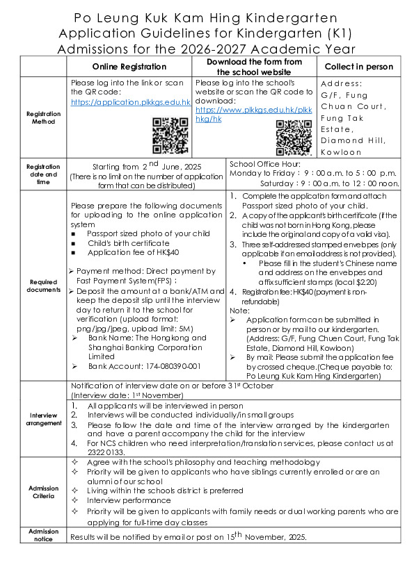 Admission Arrangements for Nursery (K1) Classes in Kindergartens for the 2025/26 School Year