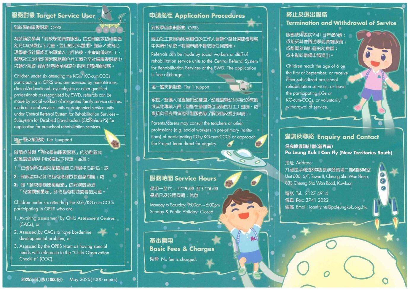 The inter-disciplinary service teams providing services to our kindergarten is the I Can Fly (New Territories South) under Po Leung Kuk.