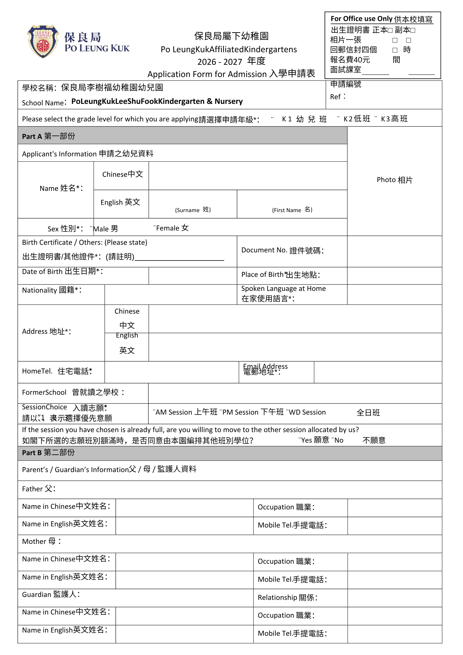 Po Leung Kuk Lee Shu Fook Kindergarten & Nursery