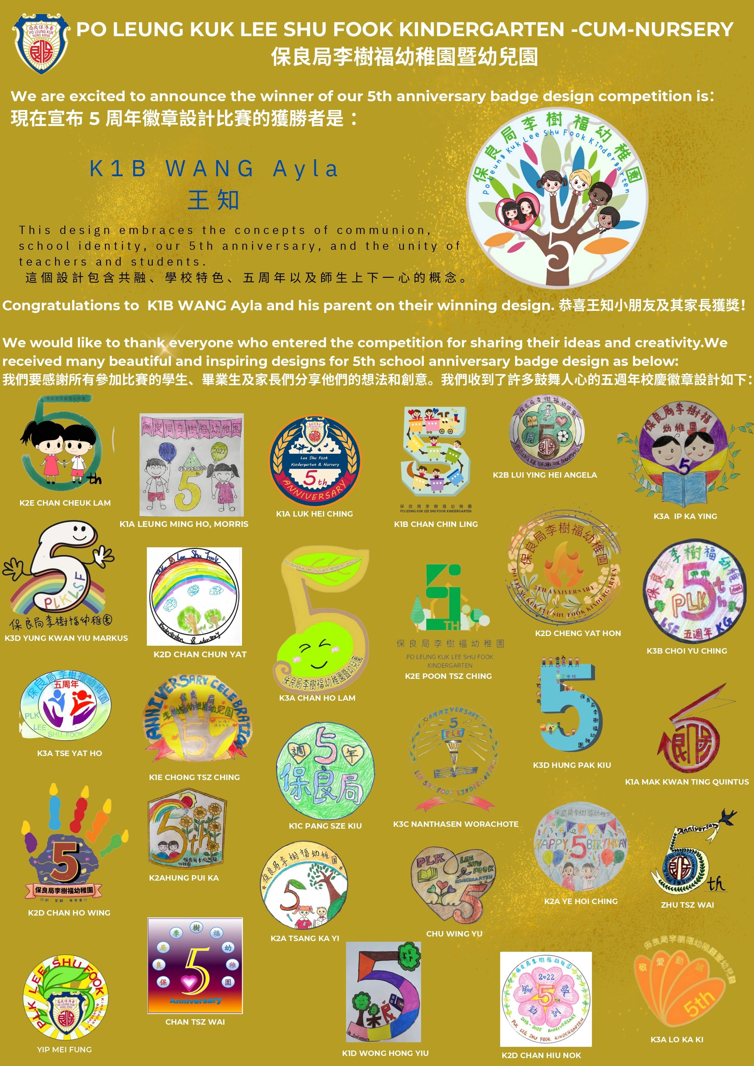 保良局李樹福幼稚園暨幼兒園5周年徽章設計⽐賽結果