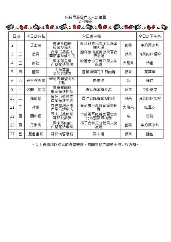 2月學生餐單
