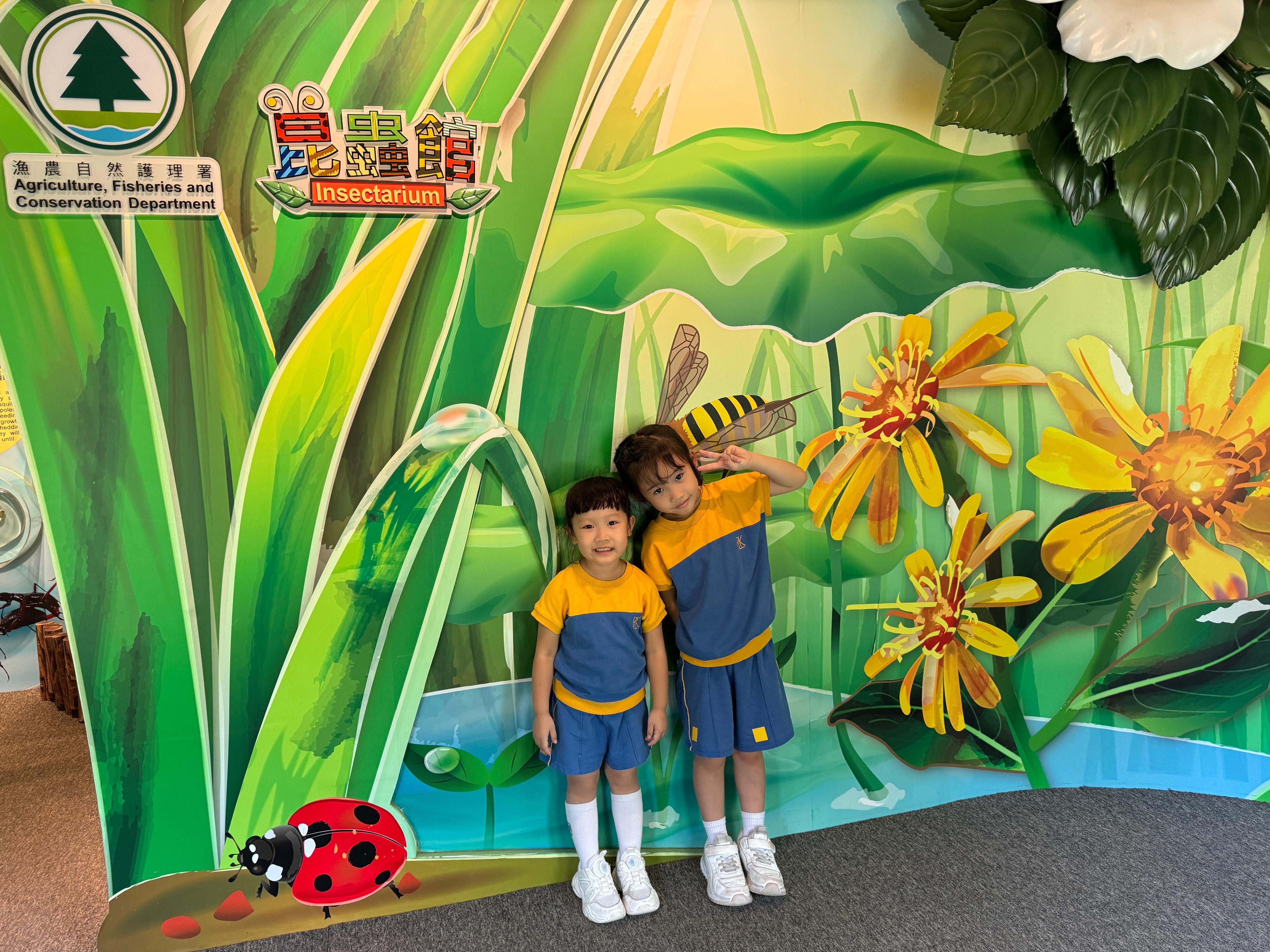 低班幼兒前往大埔海演公園,一起登上香港回歸紀念塔,欣賞吐露港美麗的景致。走進昆蟲屋,看看多種昆蟲標本與模型;沿途欣賞各種植物專類園,包括玫瑰園、香草園、香花園等,增進對植物的認識;最後,到大草地進行野餐、放風箏,讓幼兒們盡興而返。