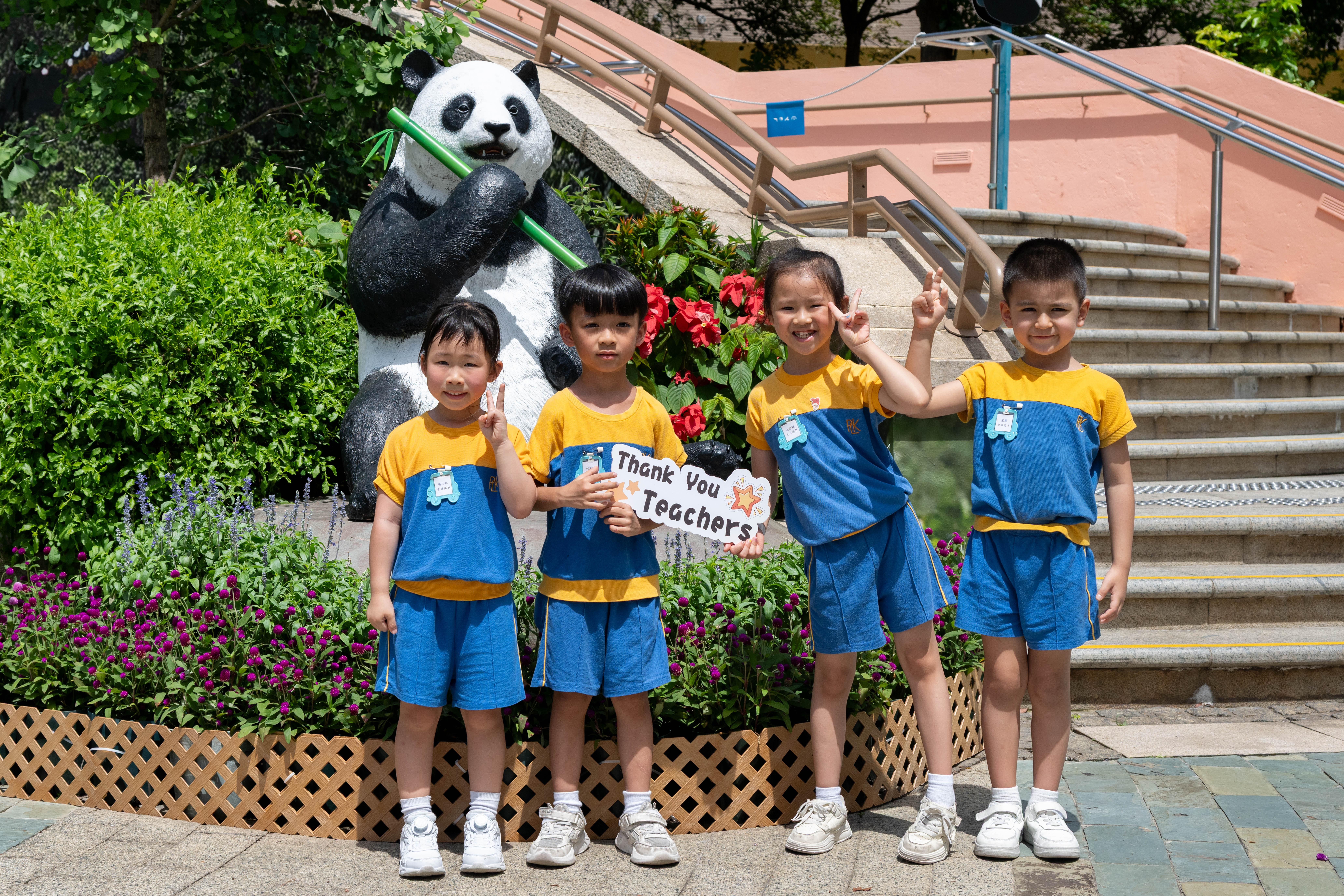 在學期結束前,老師帶領高班幼兒前往海洋公園進行戶外學習活動,參加園內活動 - 大熊貓跡中尋,讓幼兒在享受旅行之外,更有機會近距離與動物會面,還透過觀察大熊貓的居住環境,認識四川動物各種身體特徵與棲息地之關係;除此以外,老師還帶幼兒去觀察多種的海洋生物、陸地動物和雀鳥,讓幼兒有機會認識不同的物種及其保育資訊,學習了解日常生活與大自然的關係。
