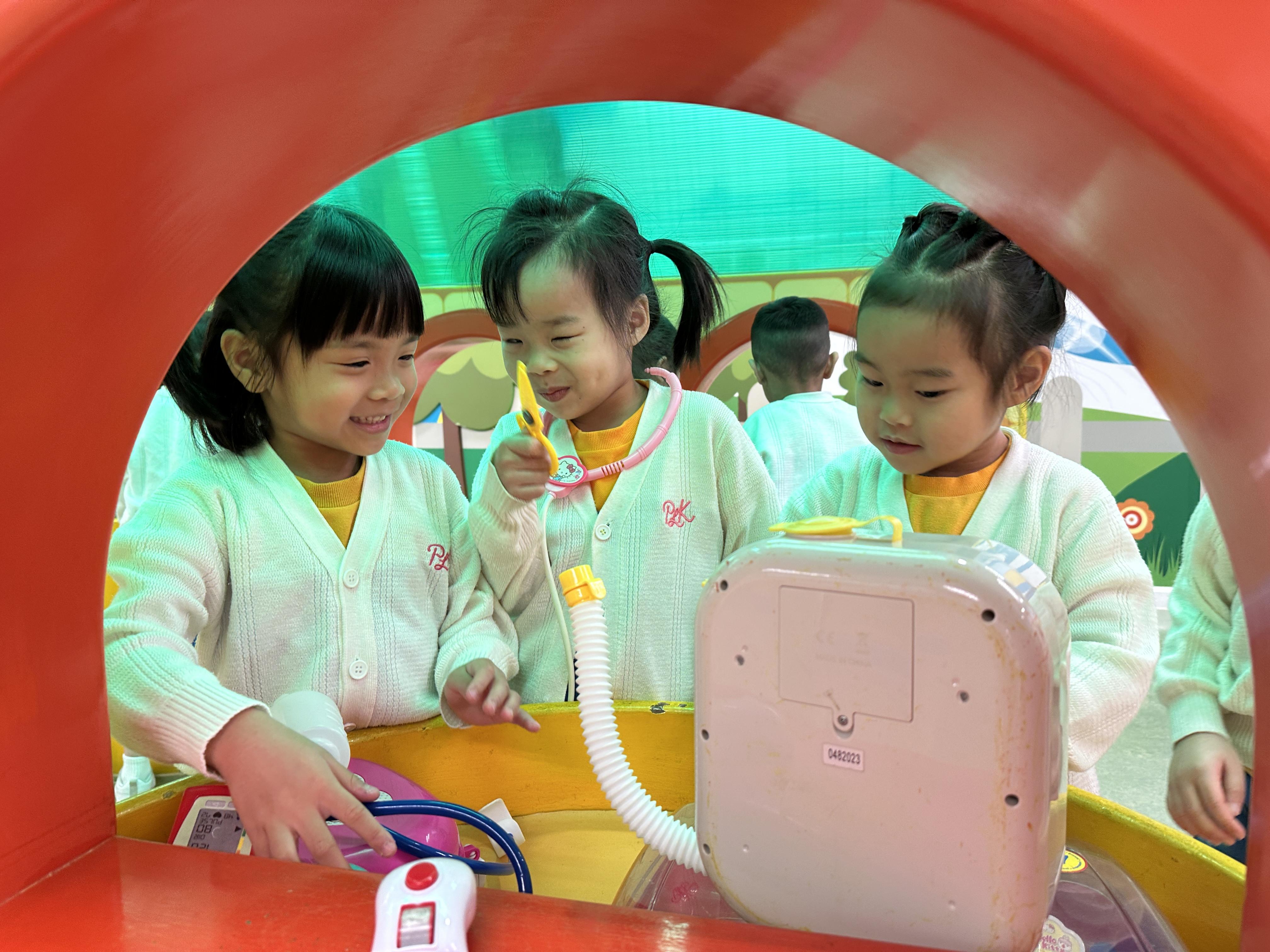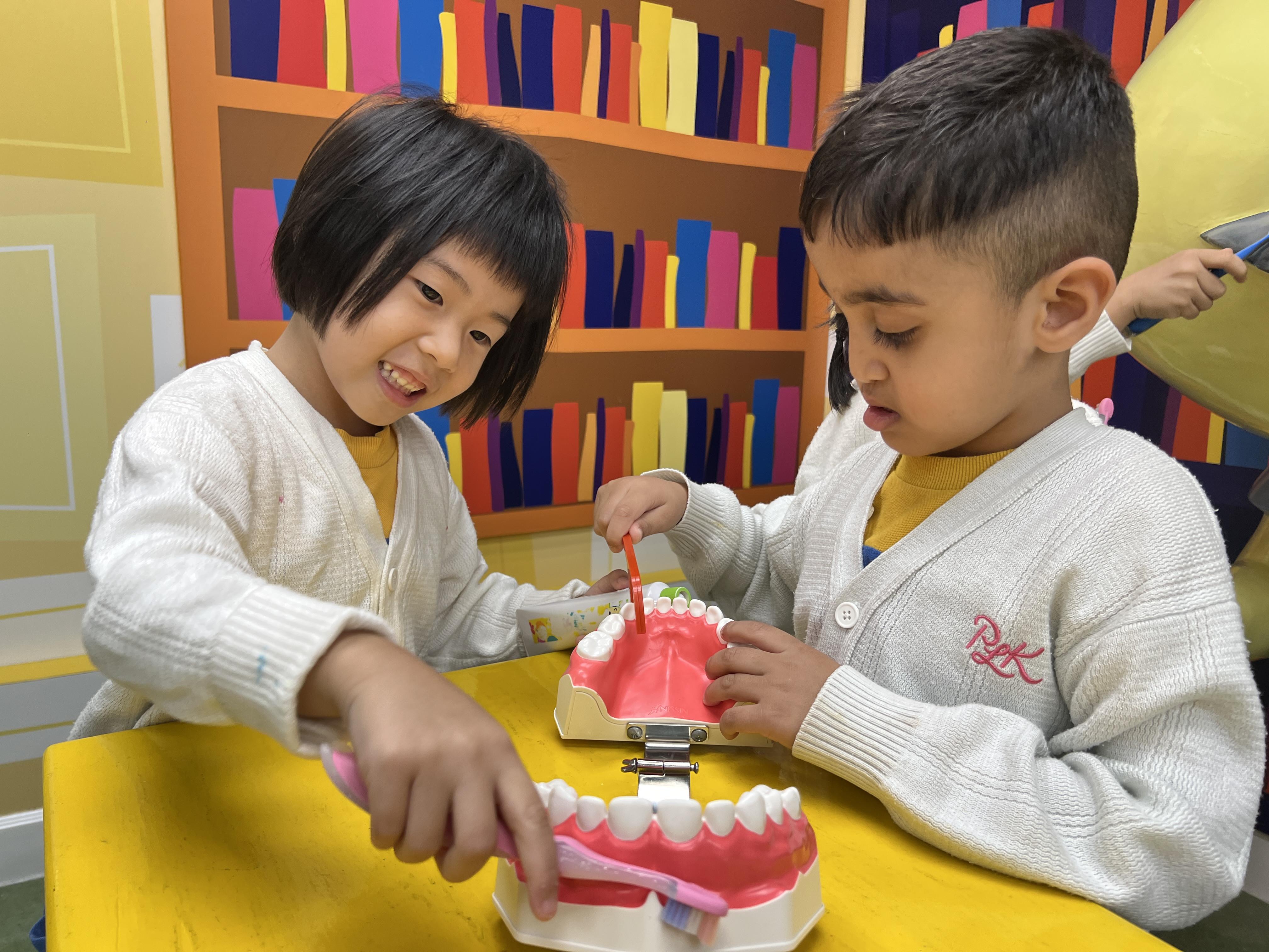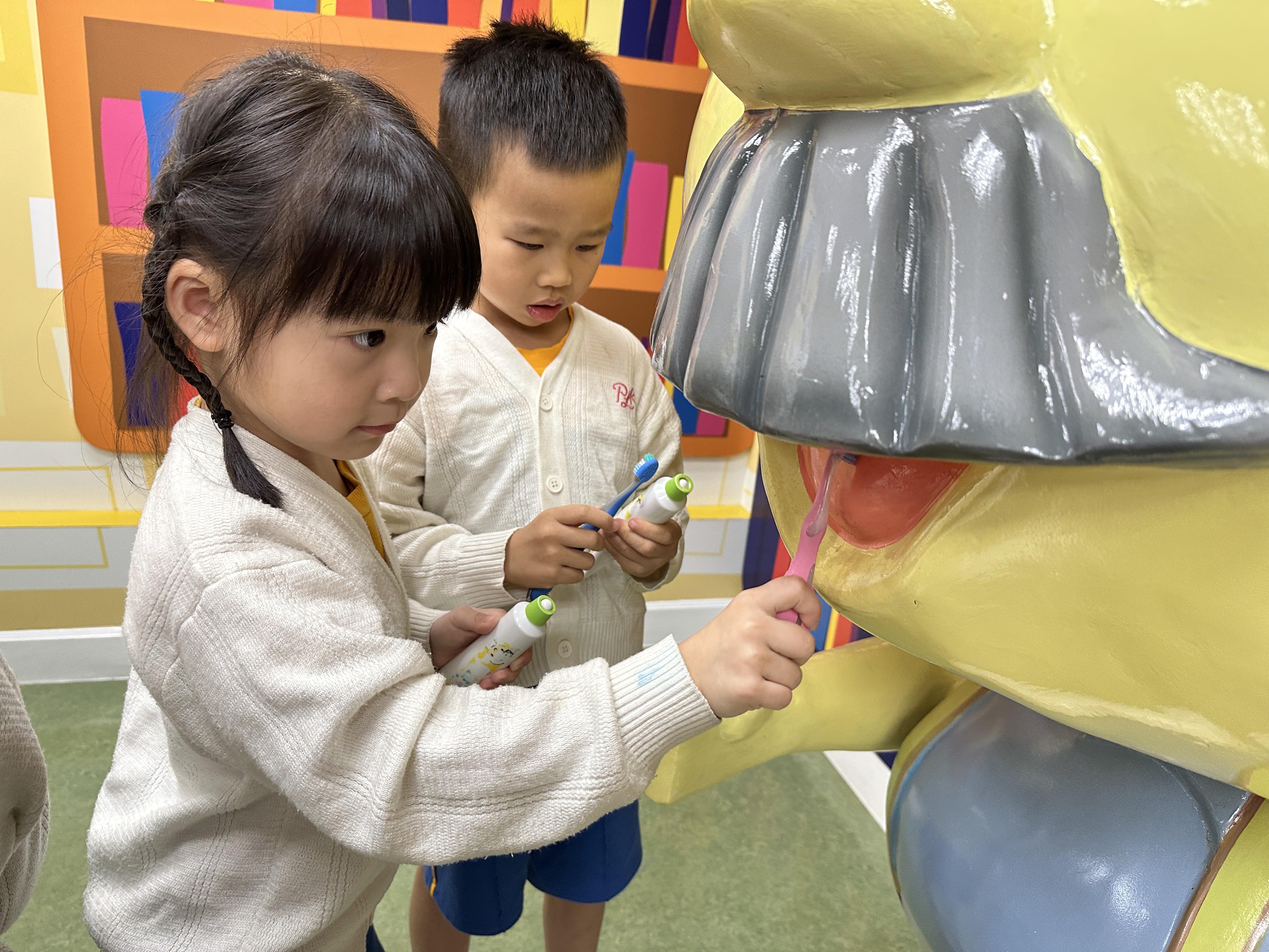 幼兒於到陽光笑容小樂園,透過小劇場及互動學習設施,加深對牙齒健康的認識;當中幼兒對模擬牙科診所活動尤其喜愛,他們分別扮演牙醫、護士及病人的角色,體驗檢查牙齒的生活片段,十分投入。讓小朋友透過有趣互動的遊戲活動,學習口腔健康知識。
