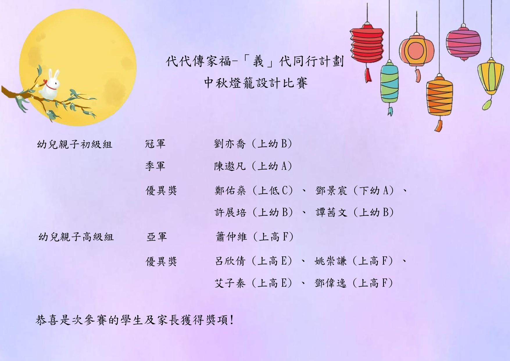 代代傳家福-「義」代同行計劃 -中秋燈籠設計比賽得獎幼兒