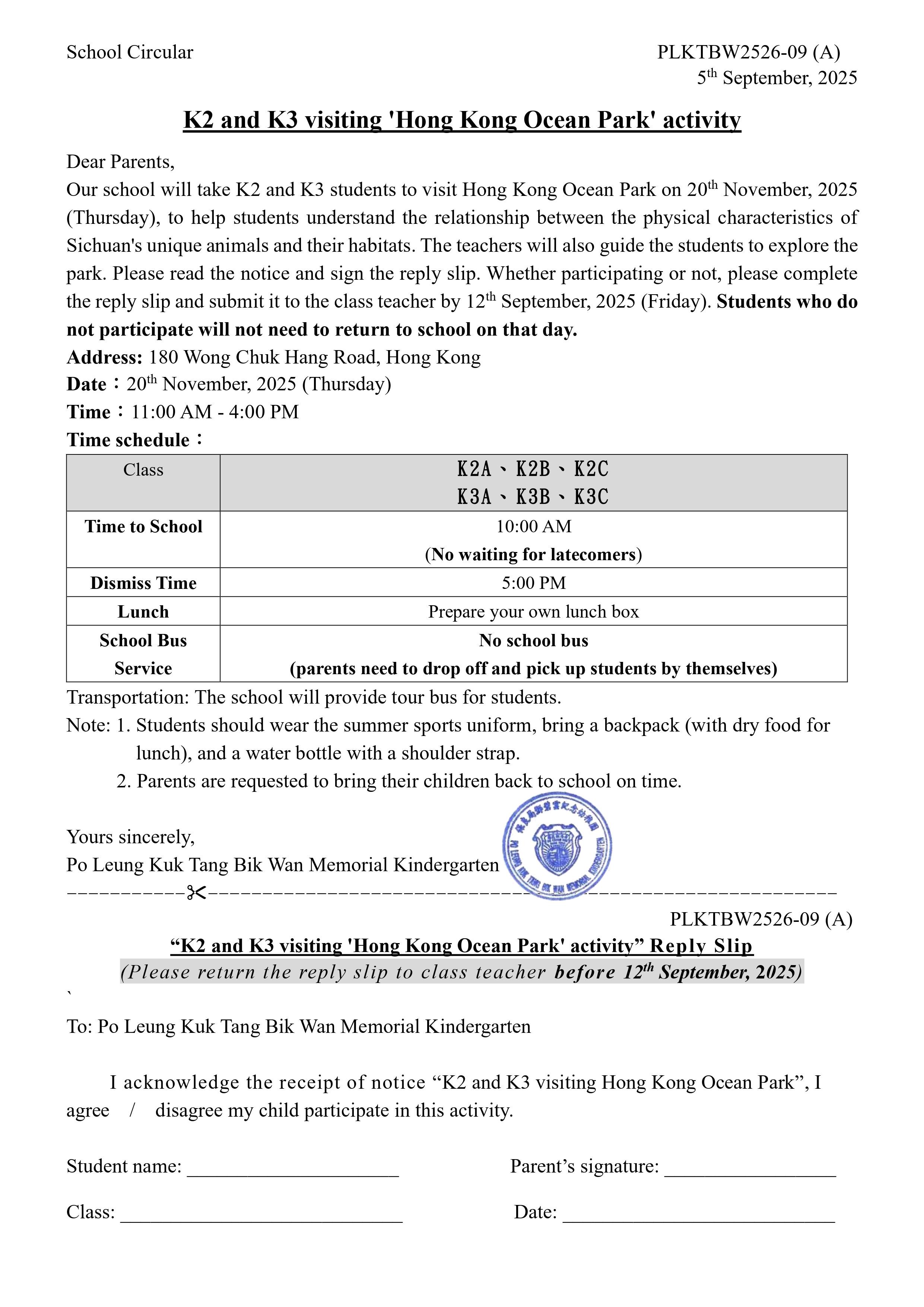 K2 and K3 visiting 'Hong Kong Ocean Park' activity