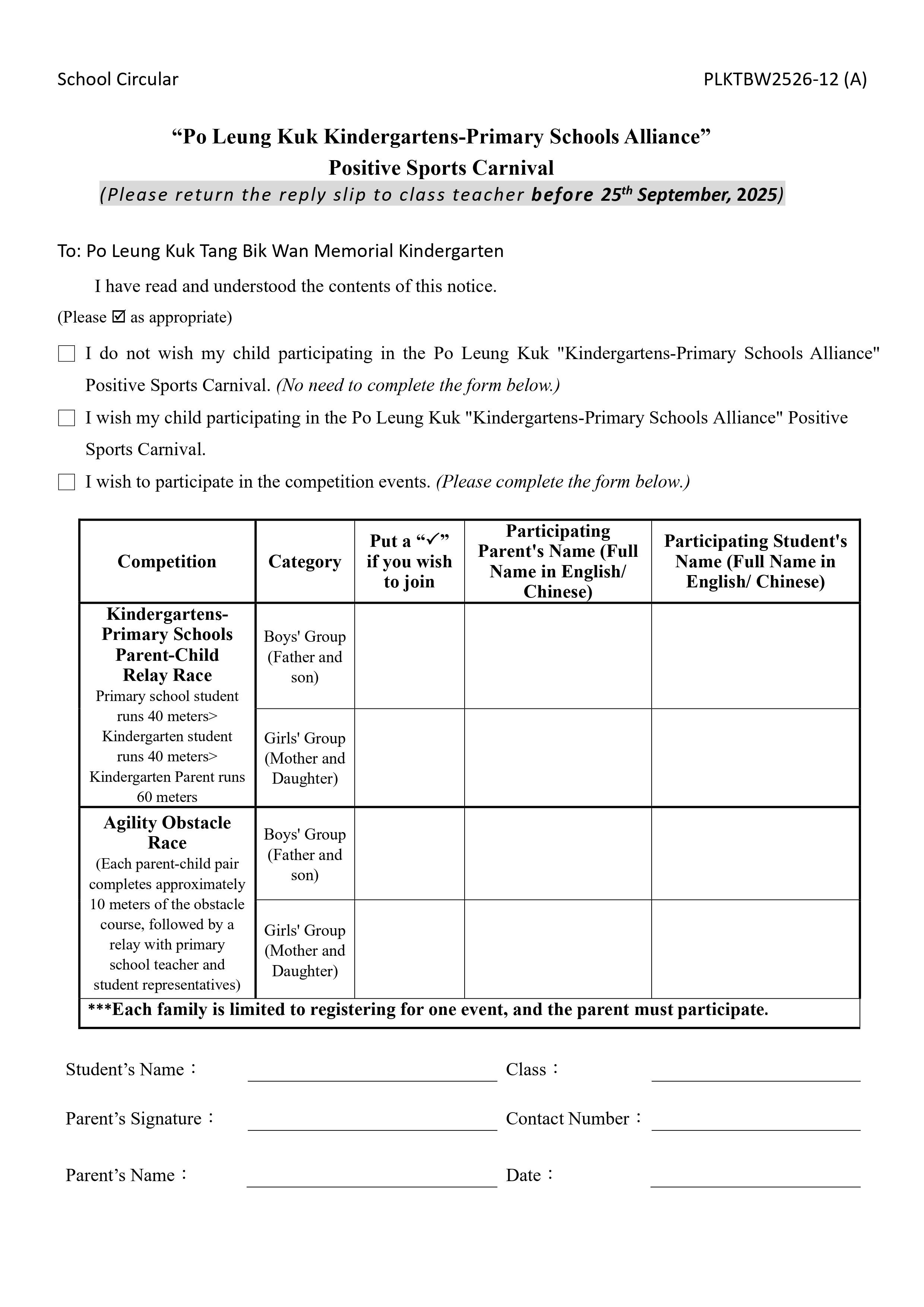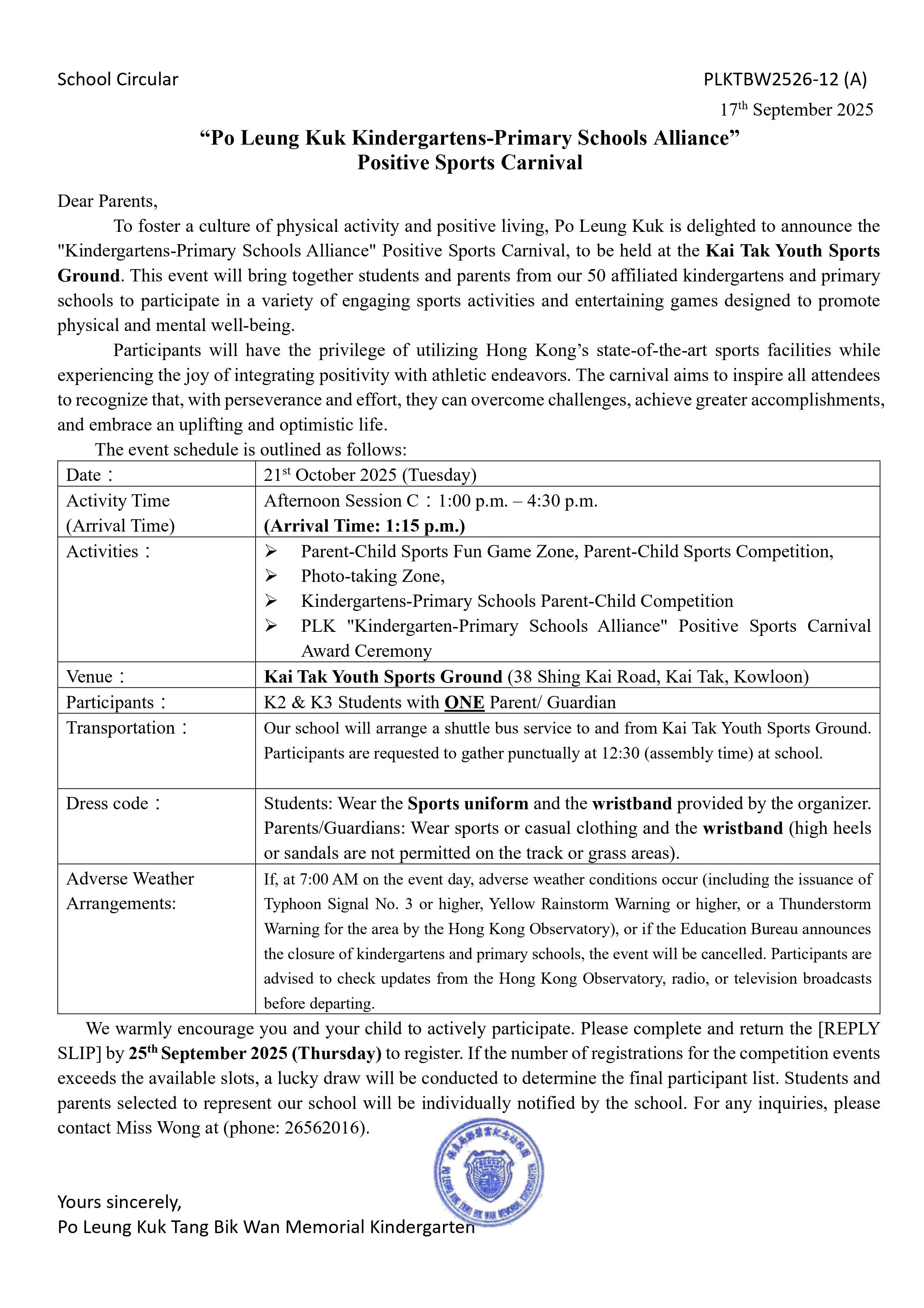 “Po Leung Kuk Kindergartens-Primary Schools Alliance” Positive Sports Carnival
