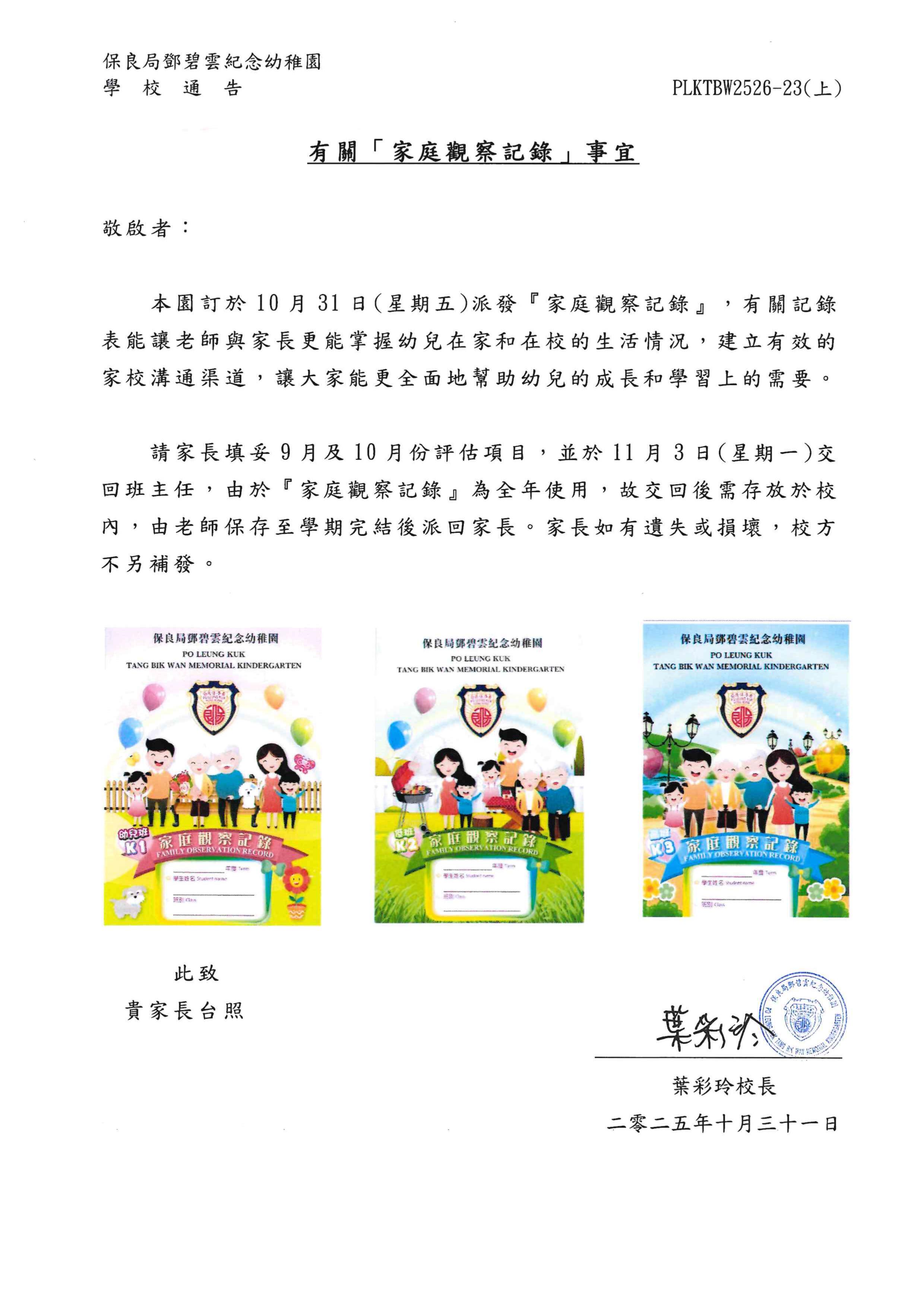 有關「家庭觀察記錄」事宜