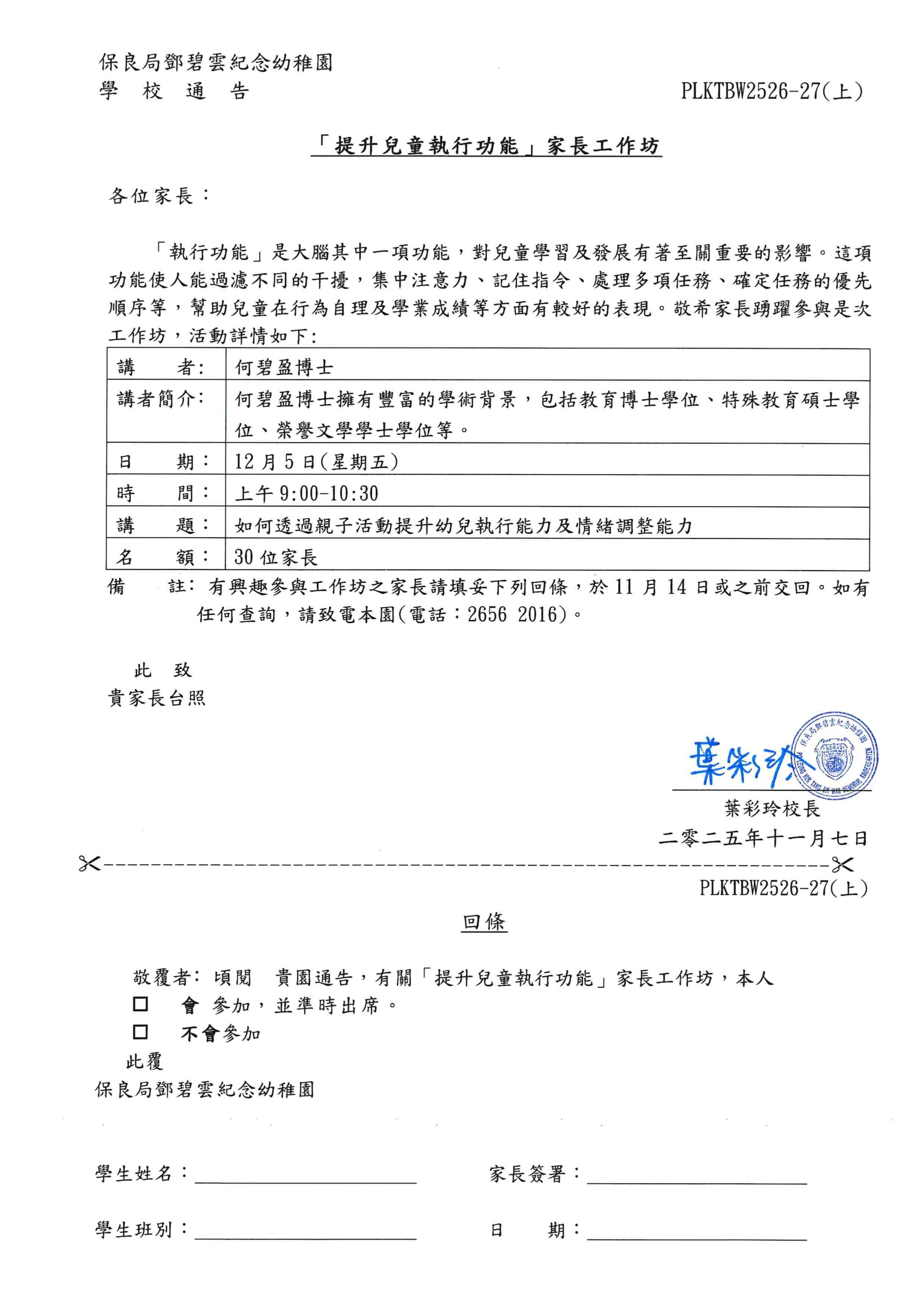 「提升幼兒執行能力」家長工作坊