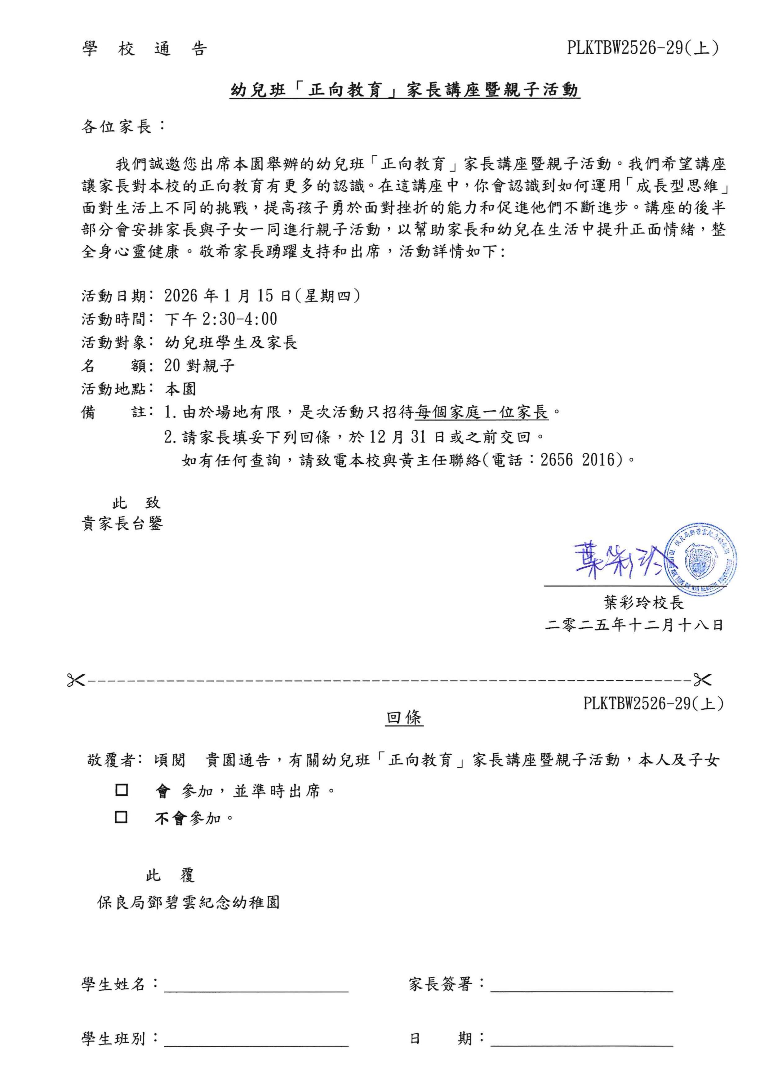 幼兒班「正向教育」家長講座暨親子活動