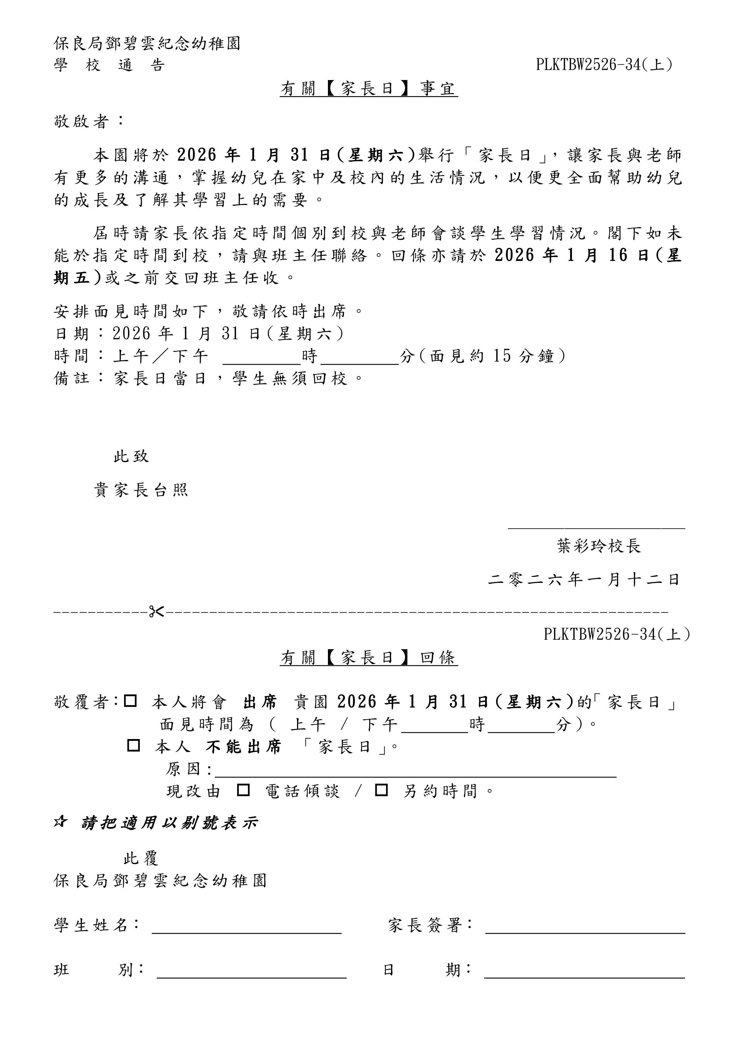 有關【家長日】事宜