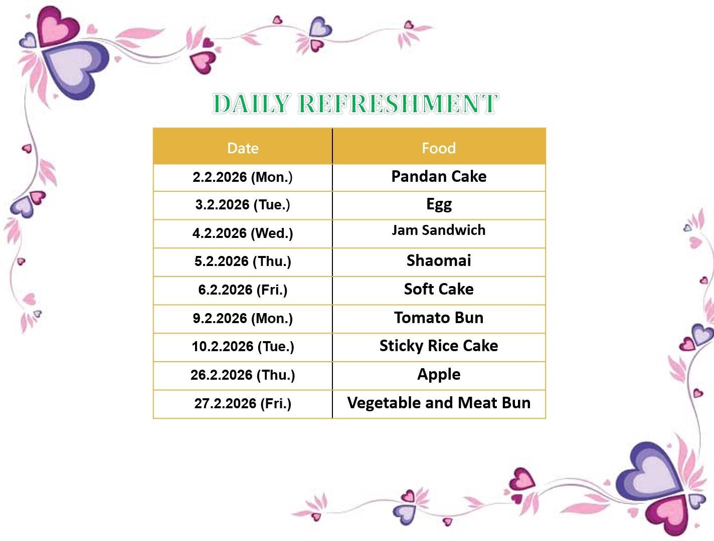 Febuary Menu