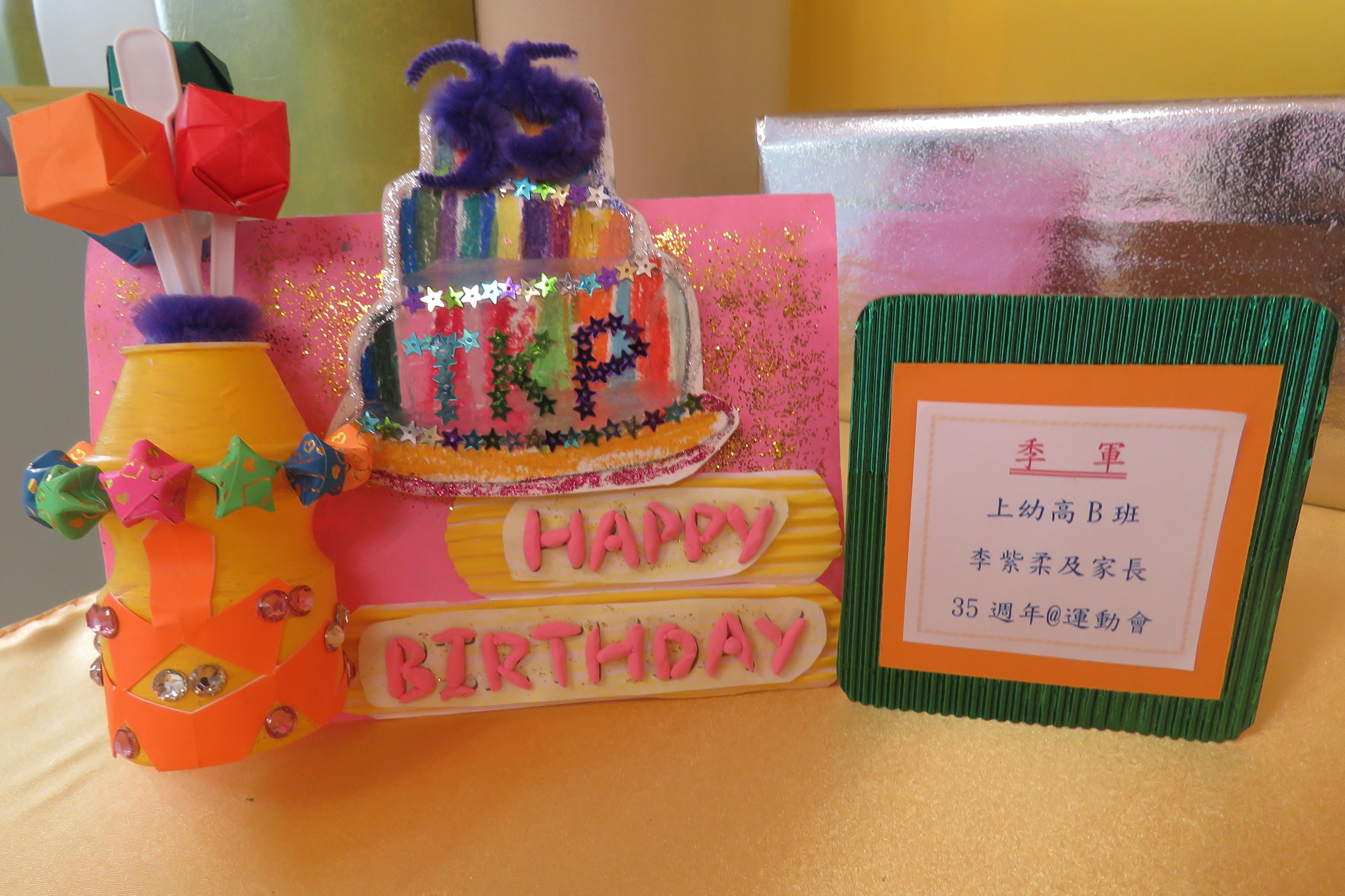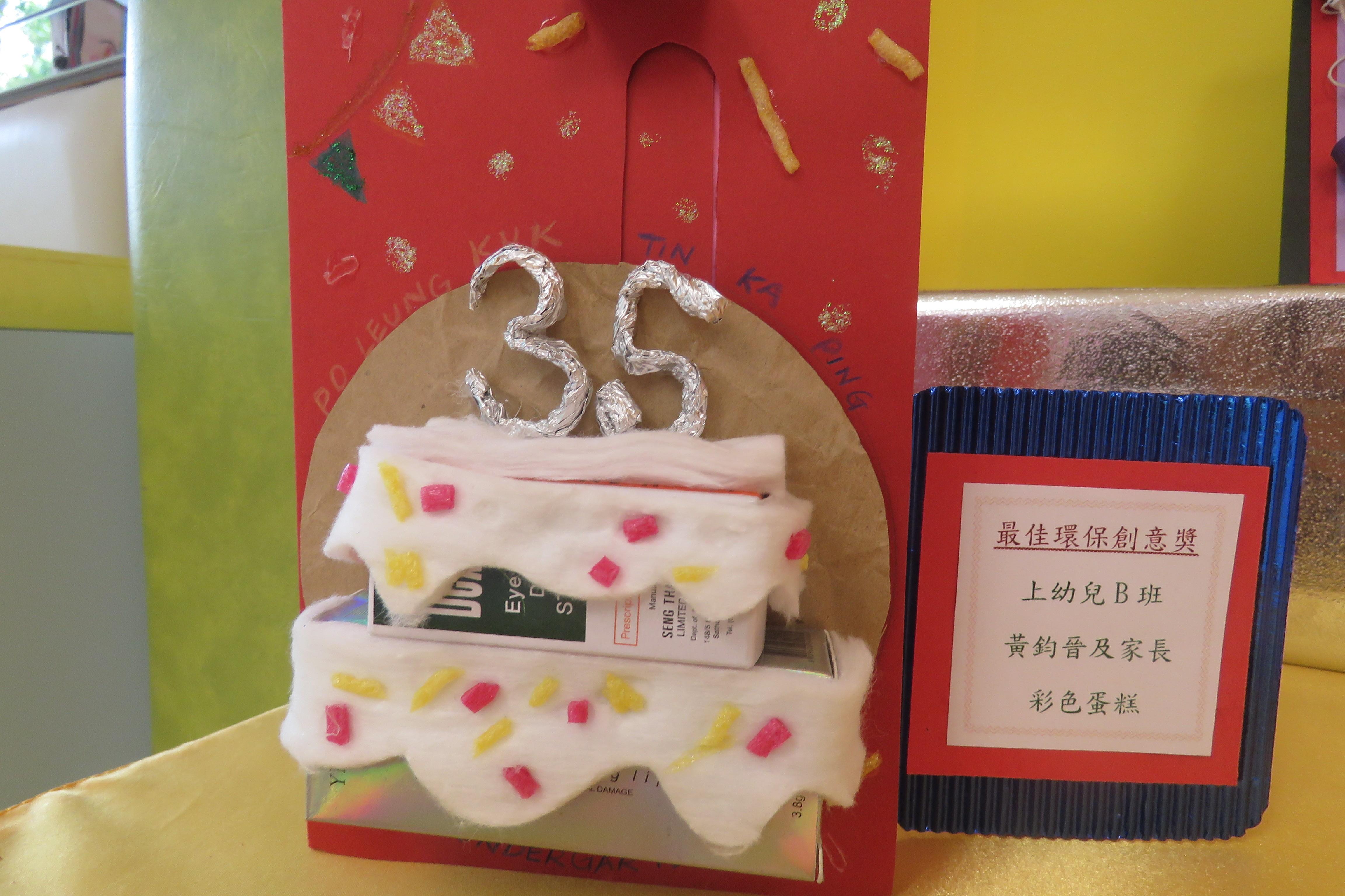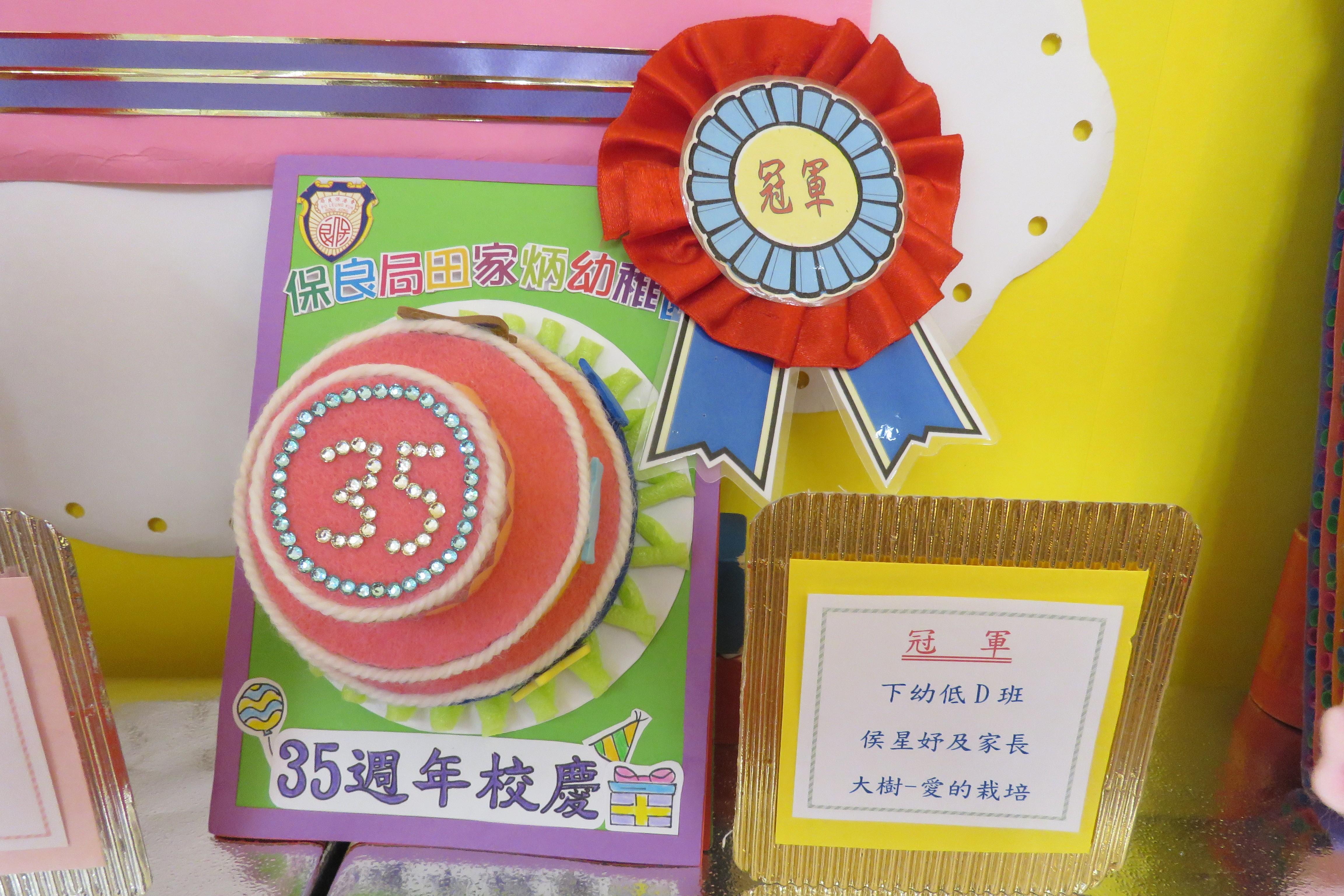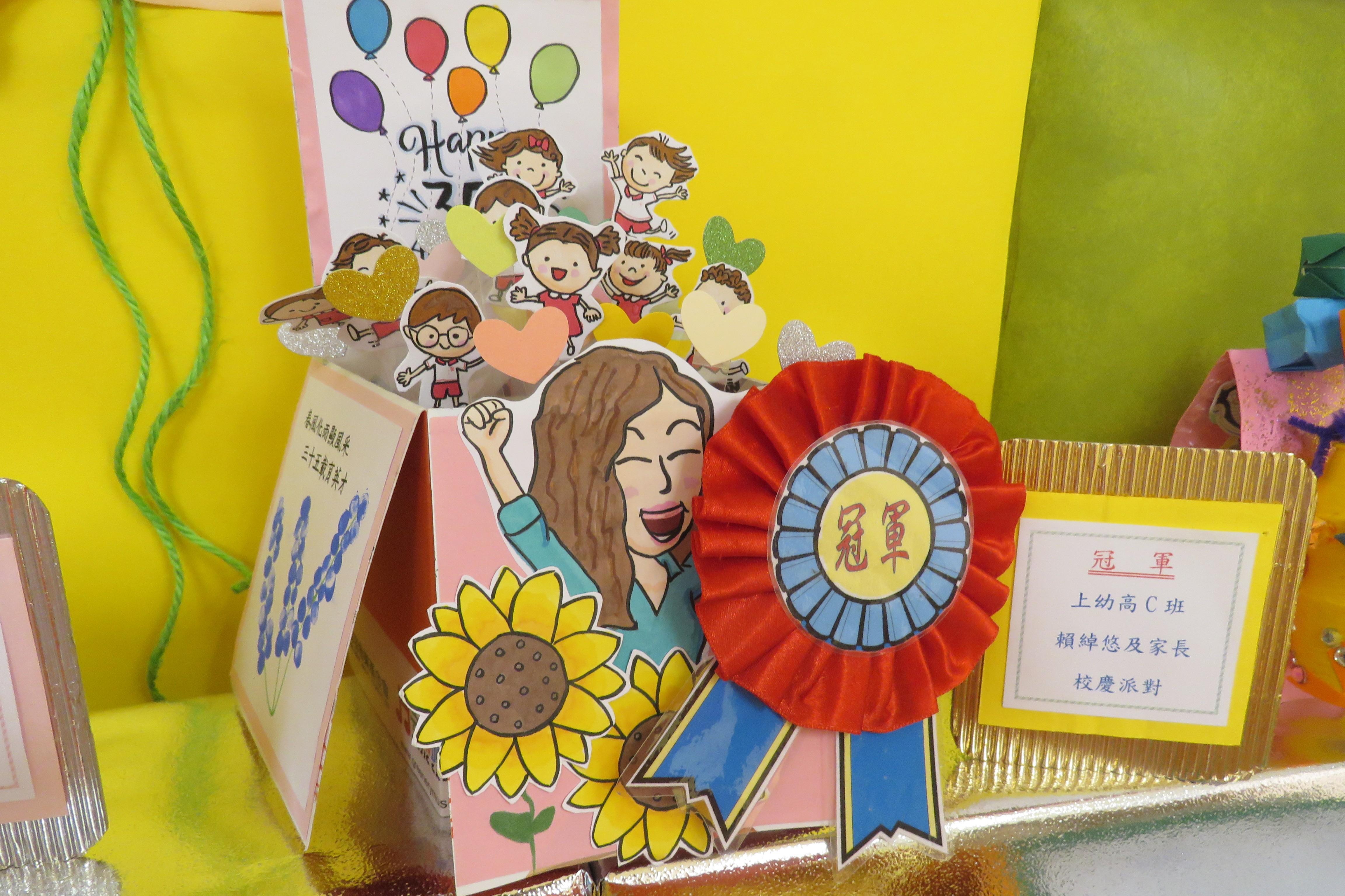 35週年校慶生日卡設計比賽 已完滿結束,各家長積極參與及支持,共收集了171份參賽作品。經本園評審後,每級選出冠、亞、季各一名,最佳創意內容奬各一名,最佳環保創意奬各一名,優異奬各四名,得奬作品如下 :