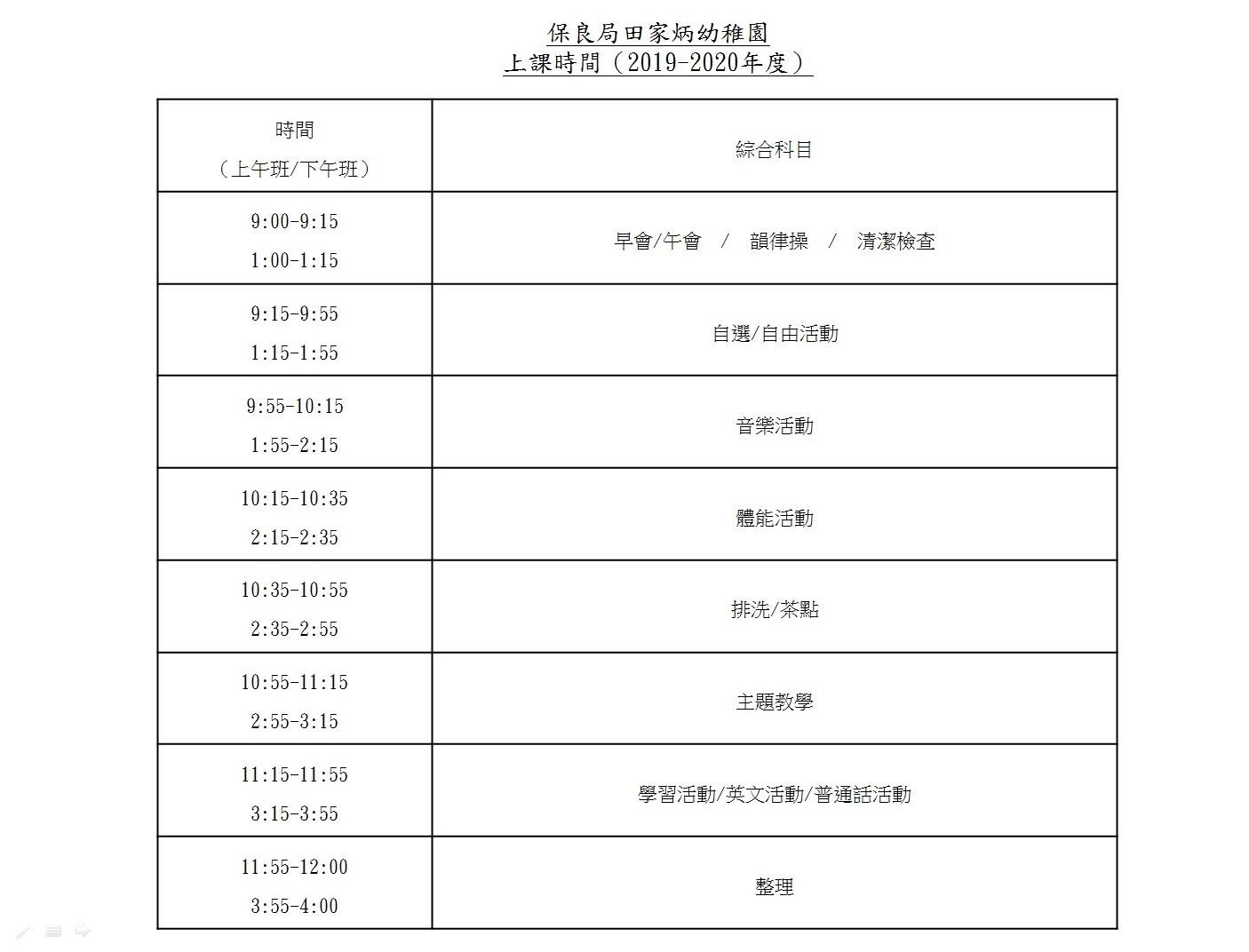 上課時間表