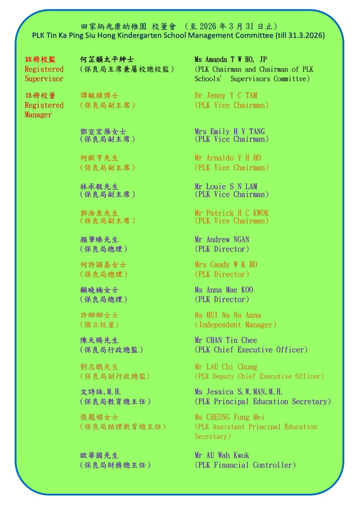 保良局田家炳兆康幼稚園校董會(至2026年3月31日止)