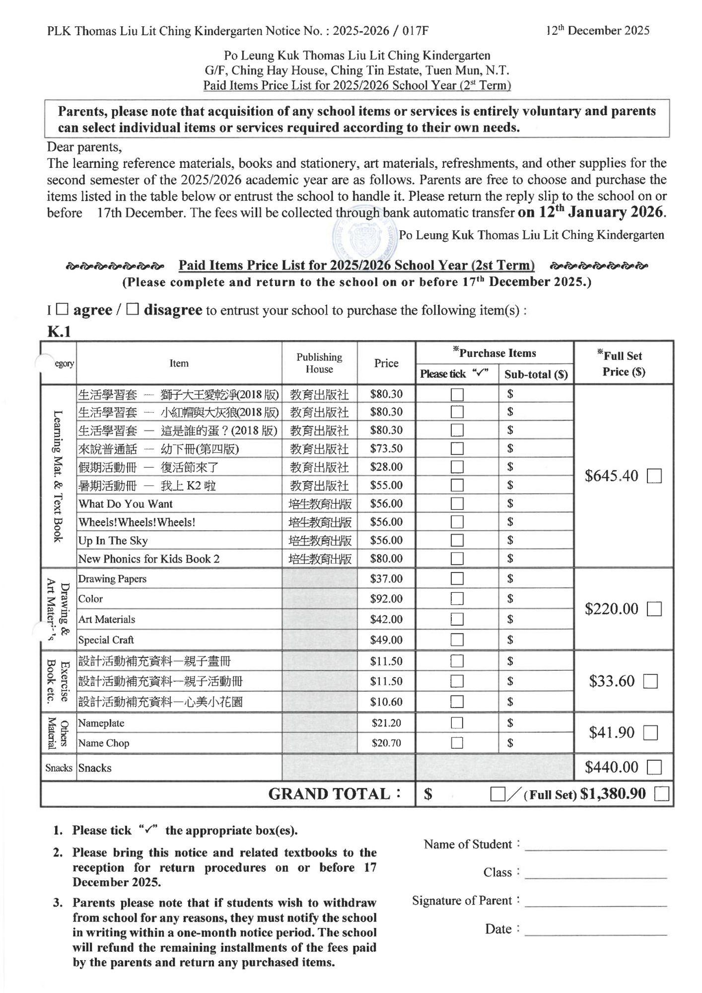 1. Tuition Fee: $11,000 per year ( payable in 10 monthly installments of $1,100 each)