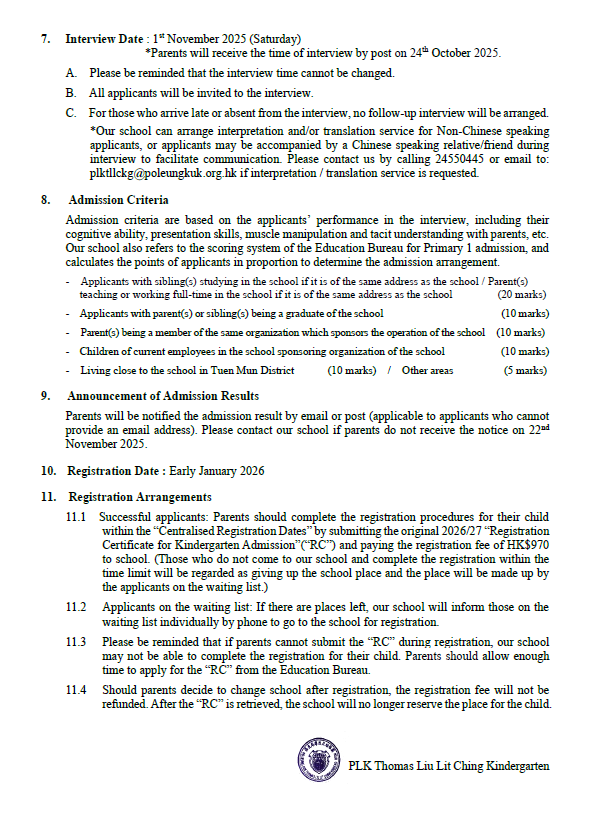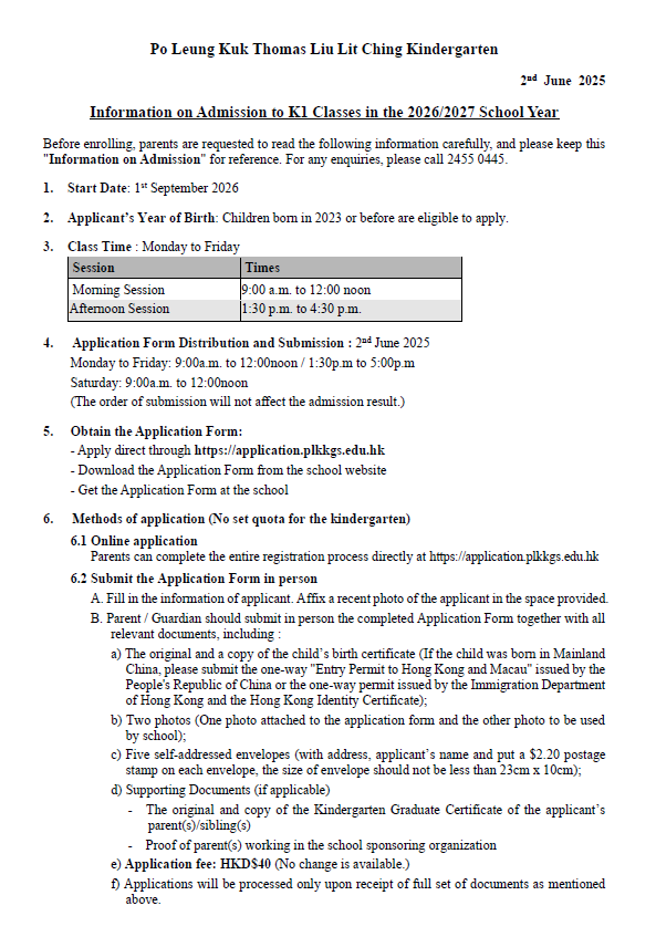 Information on Admission to K1 Classes in the 2026/2027 School Year