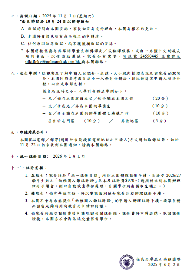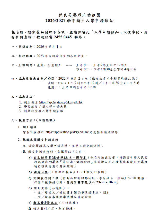 2026/2027 學年新生入學申請須知