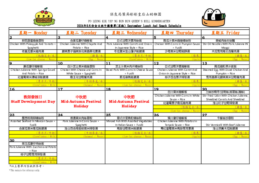 2024年9月份全日班餐單 (September Lunch and Snack sc2024年9月份全日班餐單 (September Lunch and Snack schedule).pdf