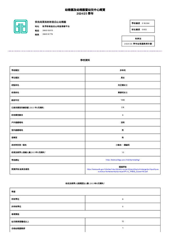 Po Leung Kuk Yip Ng Bun Bun Queen's Hill Kindergarten